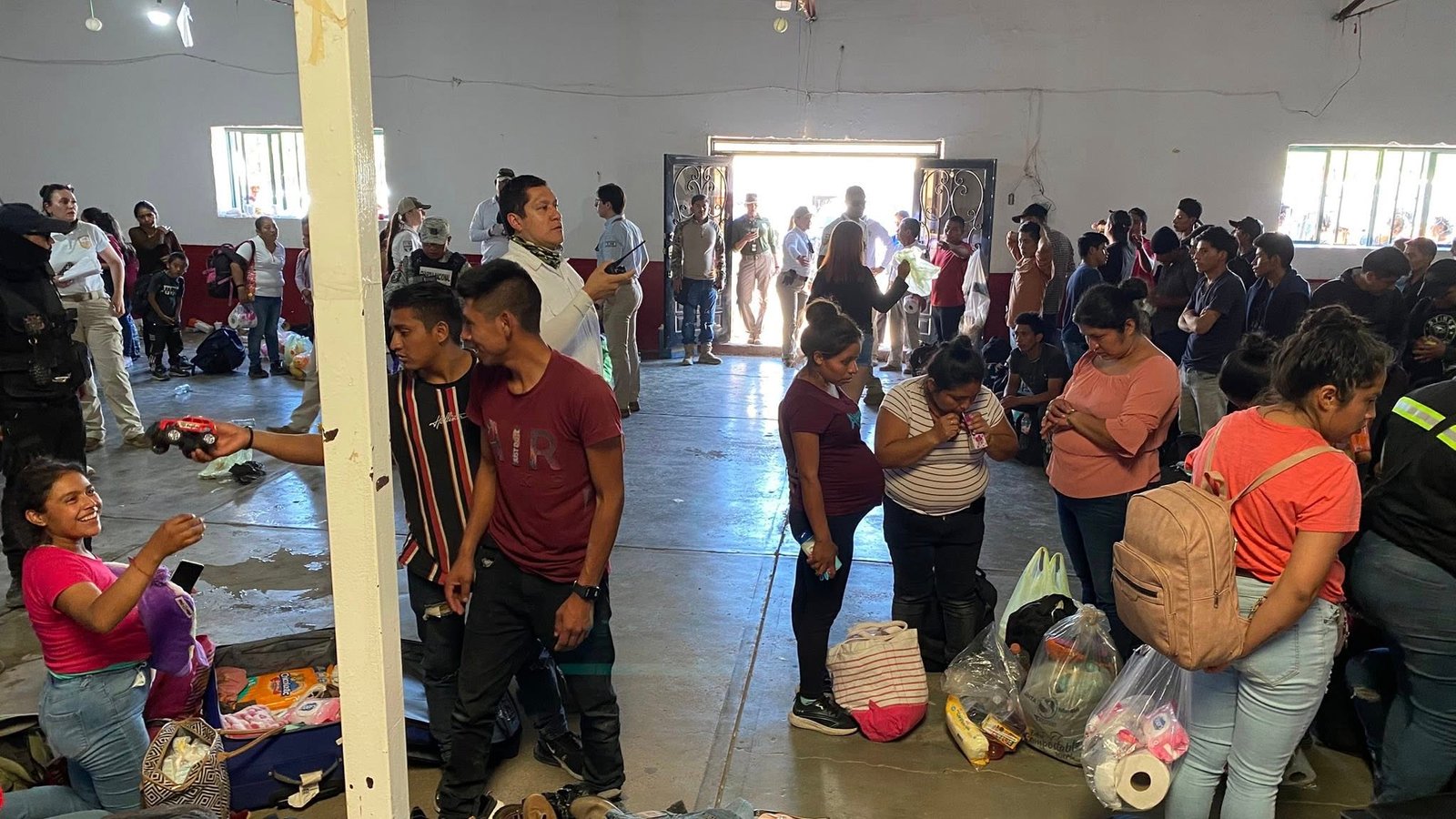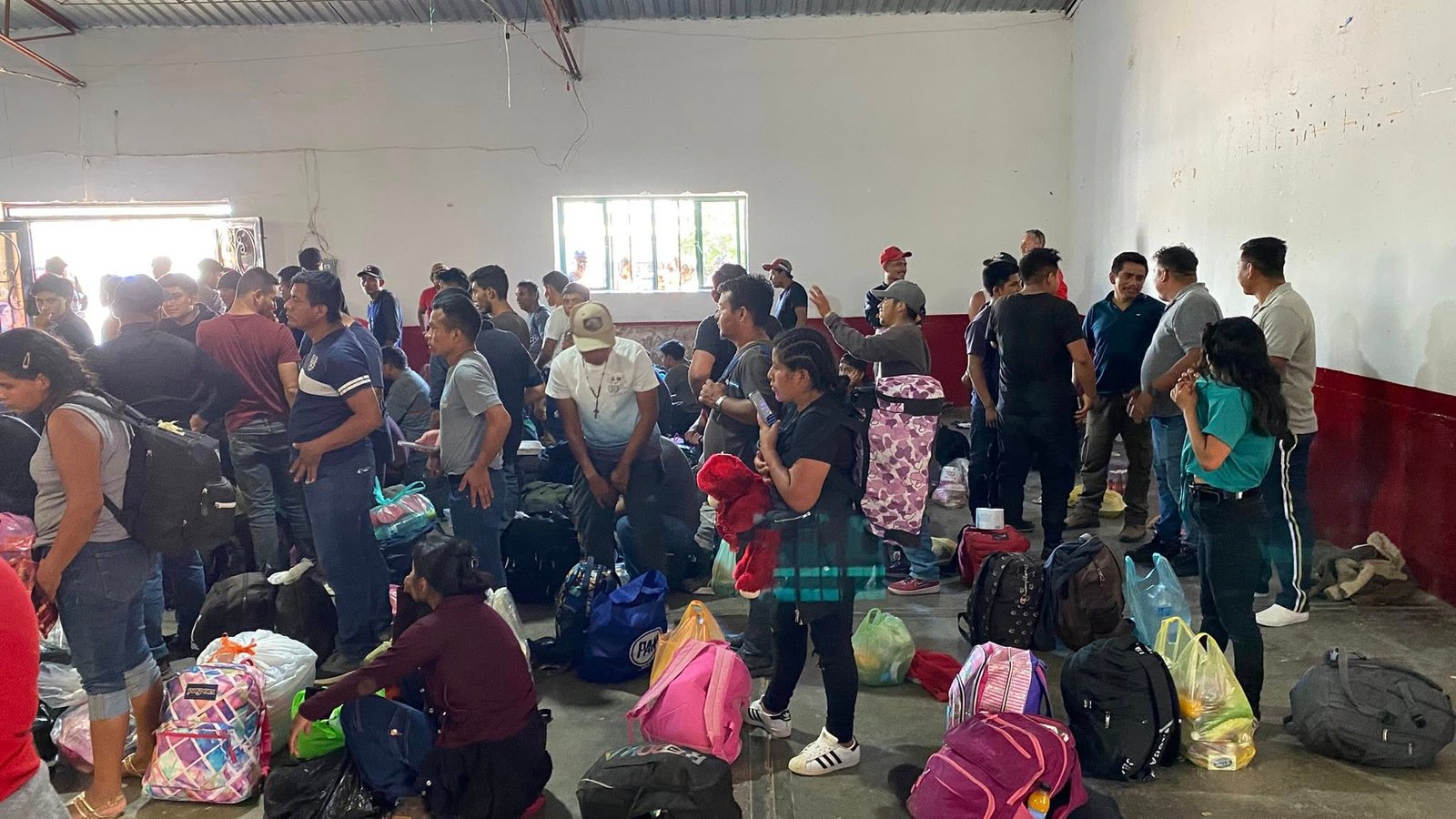 Los migrantes fueron trasladados al salón ejidal de la comunidad, donde recibieron agua, alimentos, ropa y atención médica básica para mitigar los efectos del viaje y las condiciones de abandono.